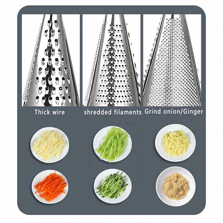 رنده مخروطی دسته چوبی ابزاری سبک، ساده و بسیار کاربردی در زمان آشپزی است. این رنده مخروطی دارای 3 نوع صفحه برش برای رنده کردن مواد غذایی بصورت زبرش ریز، برش متوسط و برش درشت است. که با هر کدام از صفحه برش ها میتوانید مواد غذایی را رنده و یا سالا خود را تزئین کنید. این رنده چند منظوره مخروطی برای استفاده راحت و آسان و همچنین استفاده روزمره طراحی شده است. قسمت زیر این رنده مخروطی دارای حلقه سیلیکونی با رنگ مشکی است و برای جلوگیری از سر خوردن رنده در حین استفاده طراحی شده است. این ابزار از ورق استلس استیل با دسته چوب راش ساخته شده و بهتر است شستشوی آن بصورت دستی انجام شود. طراحی زیبا و منحصر به فرد این محصول ظاهر شیک و چشم نوازی را در آشپزخانه ایجاد میکند. این رنده رومیزی مخروطی خاص که در واقع یک ابزار کاربردی و مفید است را میتوانید به دوستان یا خانواده هدیه دهید. ویژگیهای رنده مخروطی دسته چوبی: • با این رنده میتوان پنیر را روی پیتزا یا پاستا خود رنده کنید این رنده مخروطی برای پنیرهای نیمه سفت تا خیلی سفت مناسب است. • طراحی شیک چوب راش یک مزیت برای چشم نواز کردن هر فضای داخلی است • این رنده چند منظوره مخروطی میتواند پنیر و مواد غذایی نیمه سفت و سفت را به صورت درشت، ریز یا پودر رنده کند. ابعاد رنده مخروطی دسته چوبی چقدر است؟ • ارتفاع: 29 سانتیمتر • قطر دهانه رنده: 12 سانتیمتر • جنس: ترکیب استیل و چوب