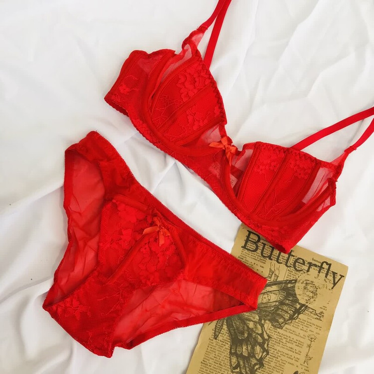 ست لباس زیر طرح صدفی اروپایی دخترانه قرمز