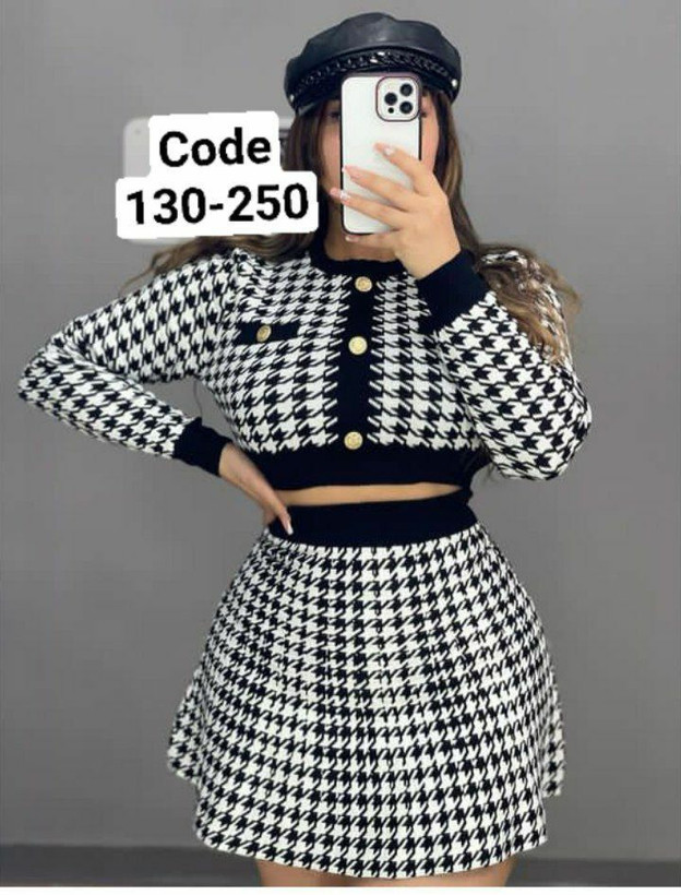 نیم تنه و دامن کرپ کش چاپی کد 250-130