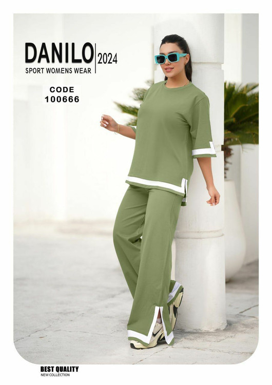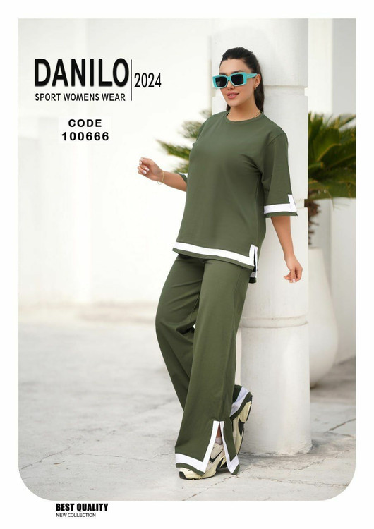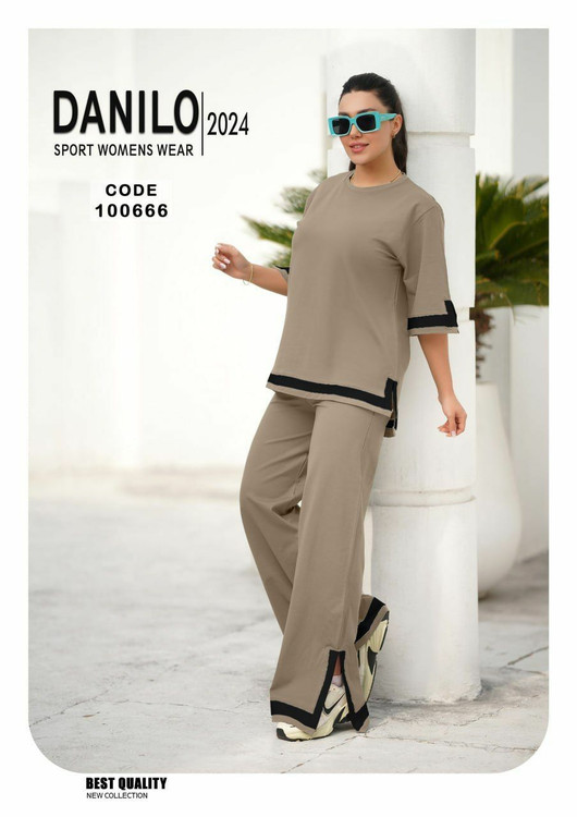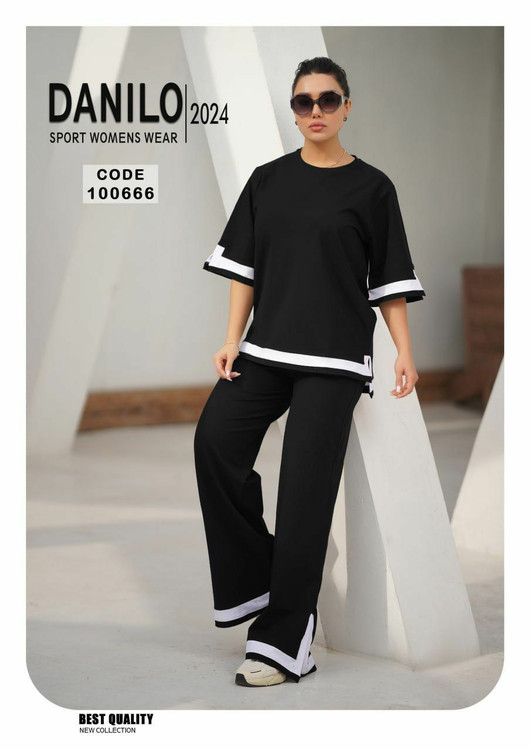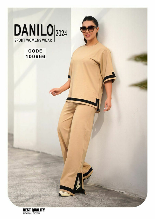 ست تیشرت و شلوار بگ بغل چاک دار تیپ لاکرا کد 100666