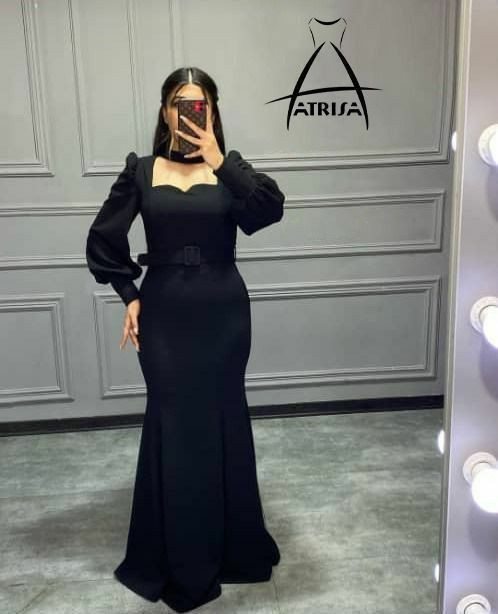 پیراهن مجلسی یقه دلبری کرپ باربی همراه با کمربند بیگ سایز مشکی