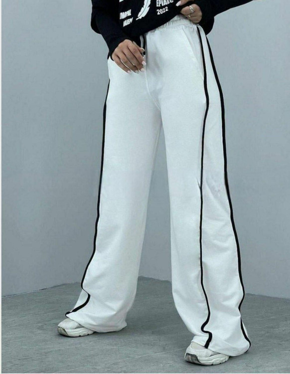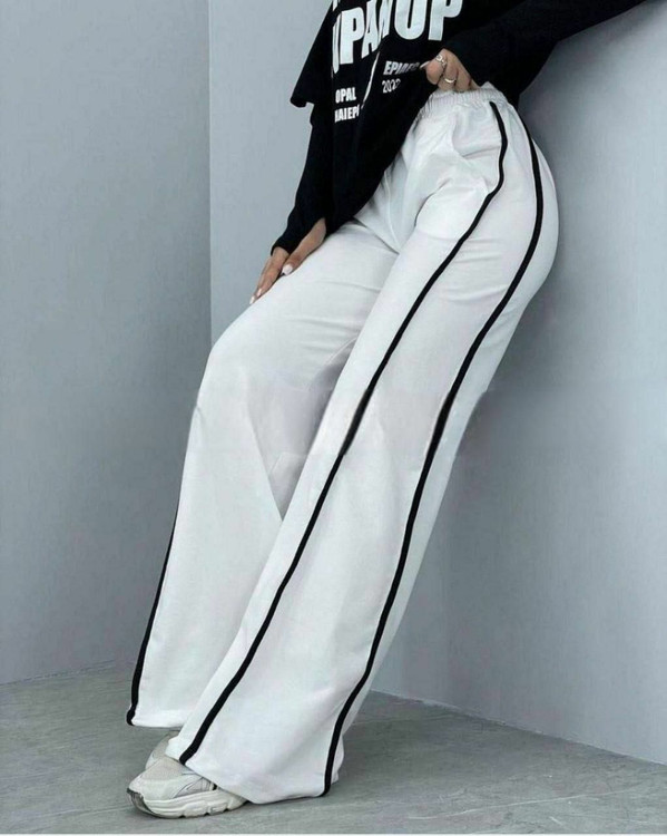 شلوار بگ نوار دوزی شده گلکسی پنبه کد 9132 سفید بیگ سایز