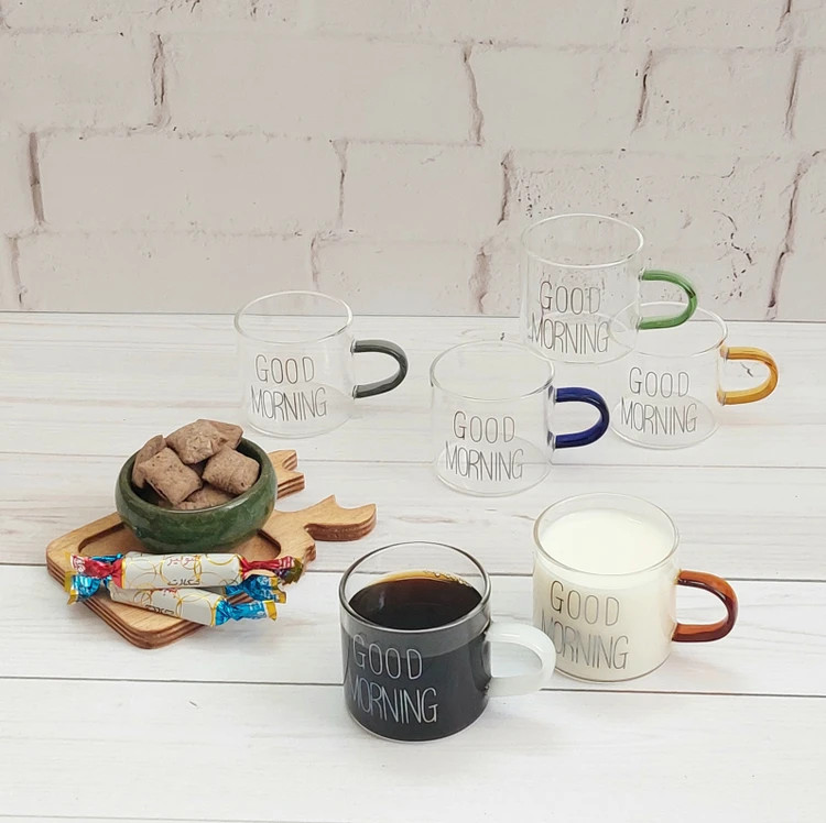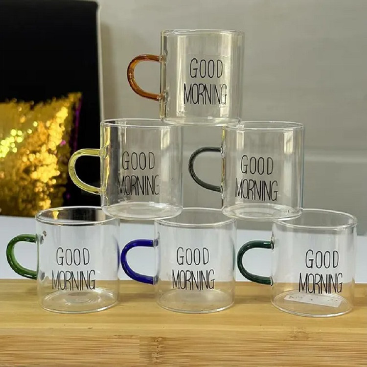 ست لیوان پیرکس دسته رنگی (6 عددی) good morning