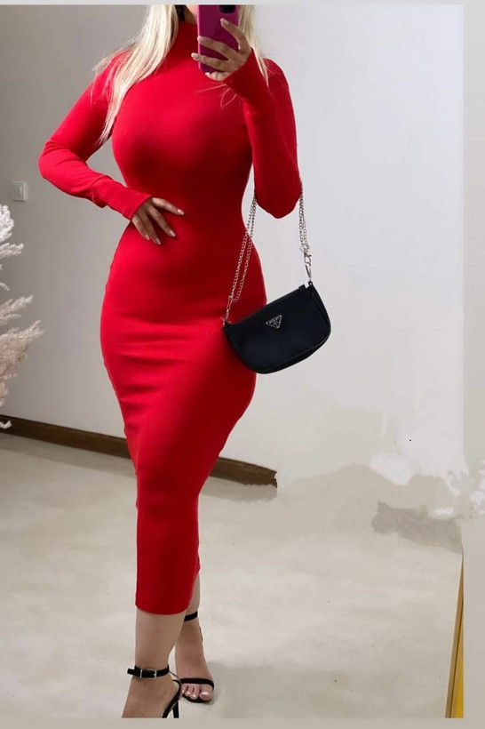 پیراهن بلند یقه اسکی دوبل فانریپ کبریتی کد 1504