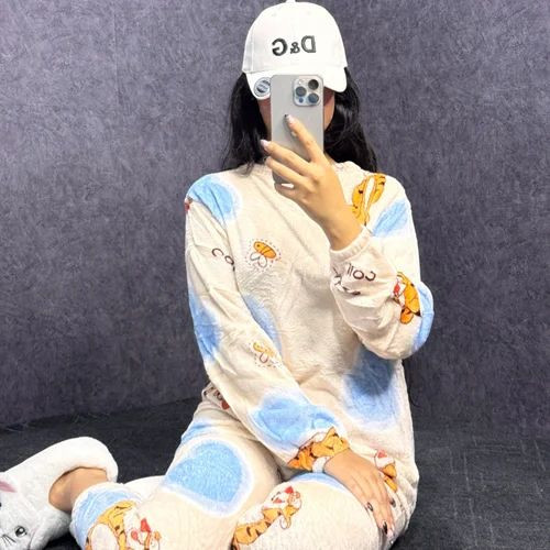 ست بلوز و شلوار ست دو تکه کره ای طرح آهو رنگ کرم کد 072