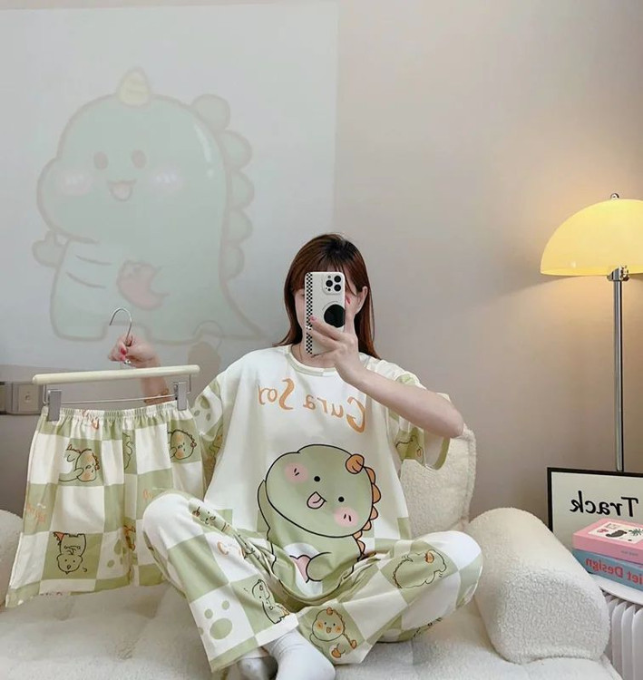 ست بلوز و شلوار و شورتک سه تکه کره ای طرح دراگون کد 091
