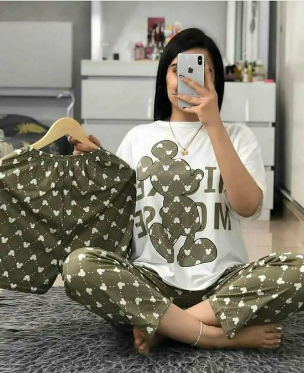 ست بلوز و شلوار و شورتک سه تکه کره ای میکی موس سبز کد 091