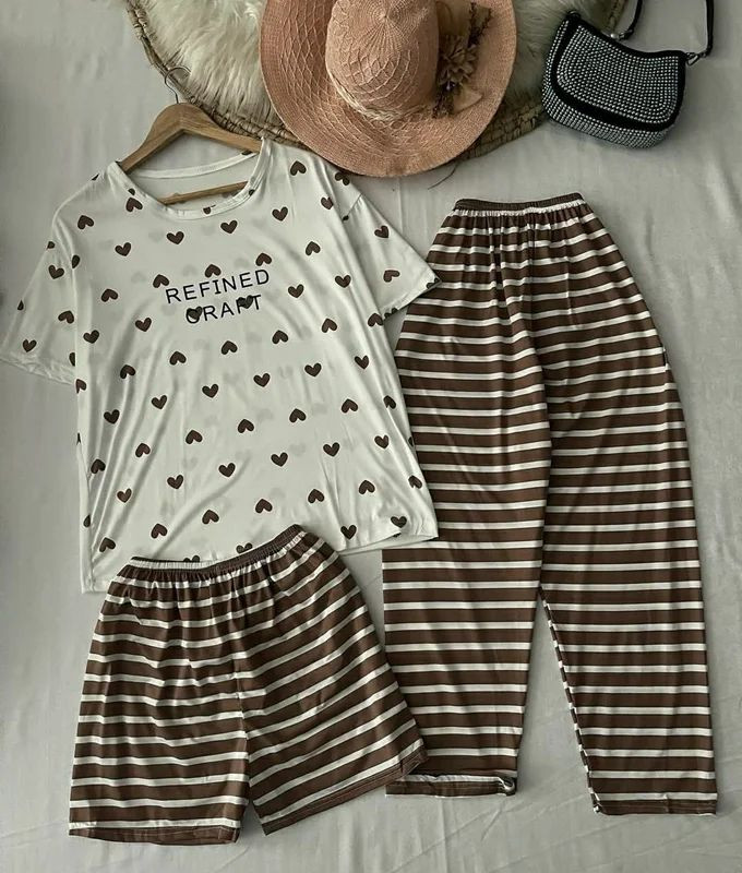 ست بلوز و شلوار و شورتک سه تکه کره ای قلبی راه راه کد 091