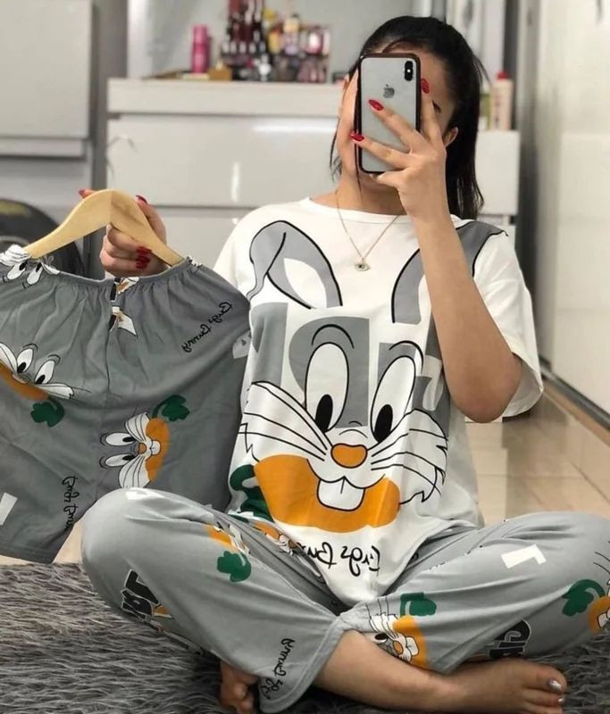 ست بلوز و شلوار و شورتک سه تکه کره ای خرگوش هویچی کد 091