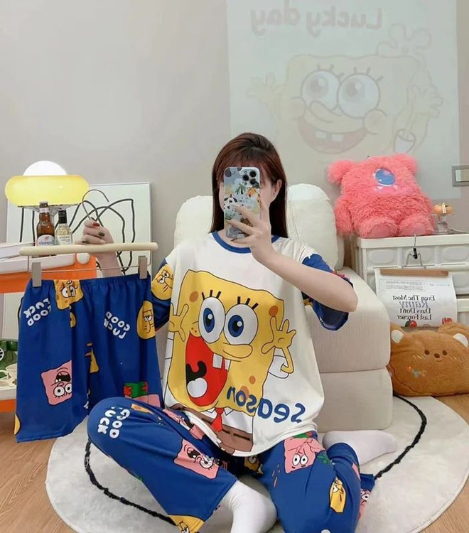 ست بلوز و شلوار و شورتک سه تکه کره ای باب اسفنجی آبی کد 091
