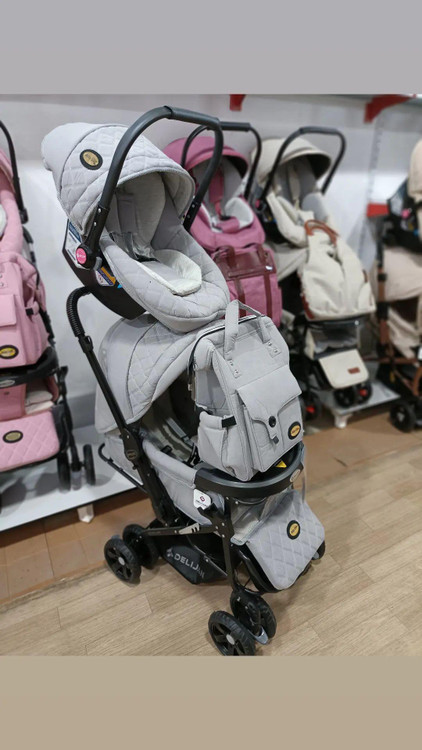 سرویس کالسکه دلیجان مدل کوله پشتی دسته رو به مادر پشت به مادر رنگ طوسی