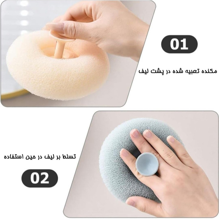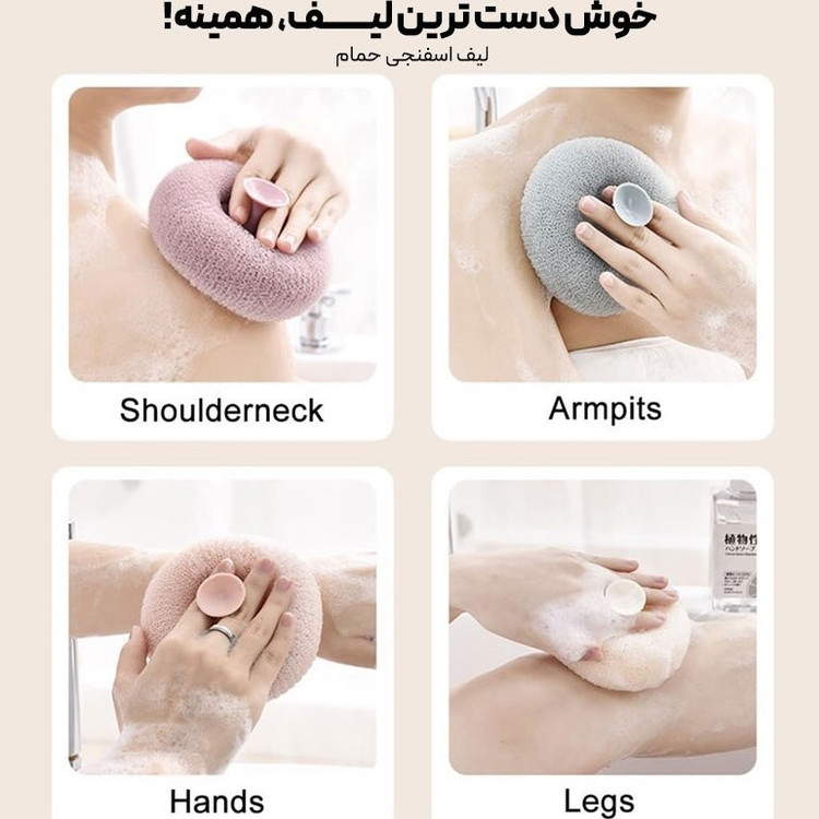 قابلیت نگهداری طولانی کف شامپو بدن،لایه برداری ملایم بدن، داری بخش چسبونک در بخش پشتی می باشد که قابلیت نگهداری توسط دیوار حمام و آویزان کردن را دارد.داری بخش جایگاه انگشت در بخش پشتی لیف است که استفاده از لیف را بسیار راحت کرده است