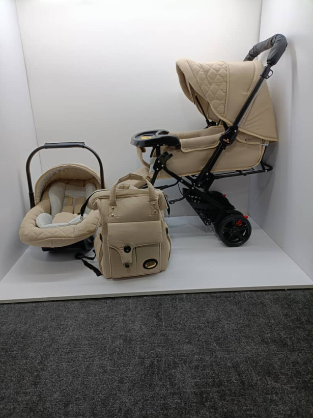 سرویس کالسکه دلیجان مدل کوله پشتی دسته رو به مادر پشت به مادر رنگ کرمی