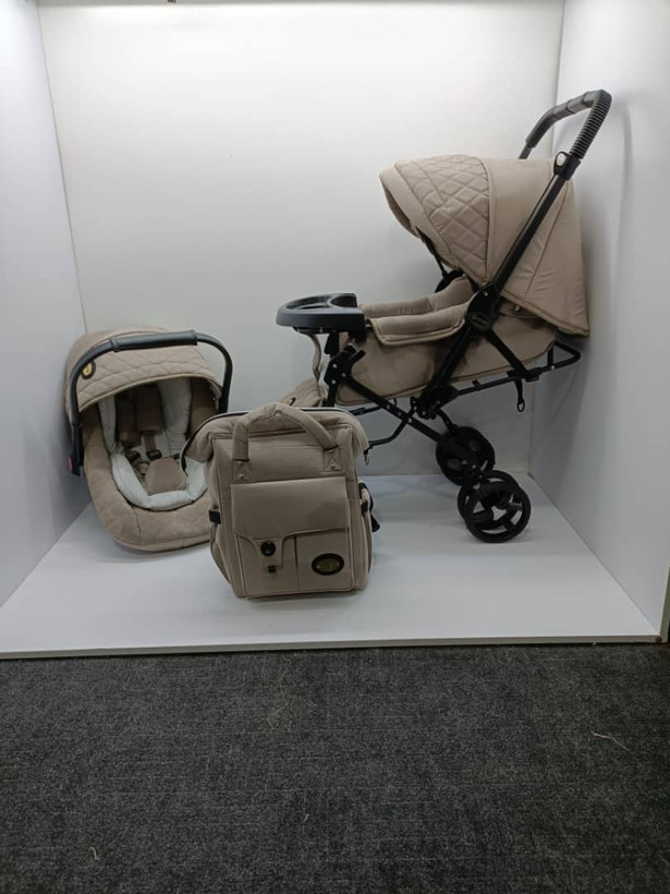 سرویس کالسکه دلیجان مدل کوله پشتی دسته رو به مادر پشت به مادر رنگ کرمی تیره