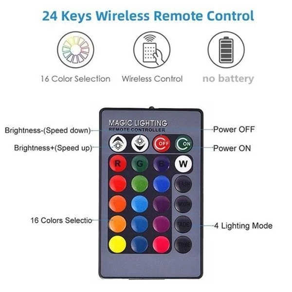 این لامپ زیبا با کنترل از راه دور تا فاصله ۵ متری روشن و خاموش میشود و رنگ نور آن به دلخواه شما قابل تغییر است.