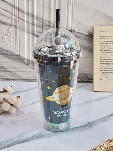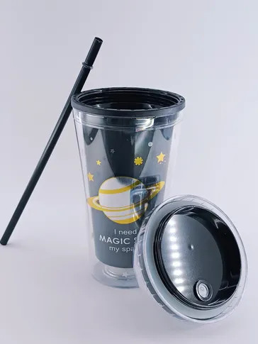 لیوان اسموتی یخی طرح کهکشان چراغ دار فانتزی کد 05-002-11