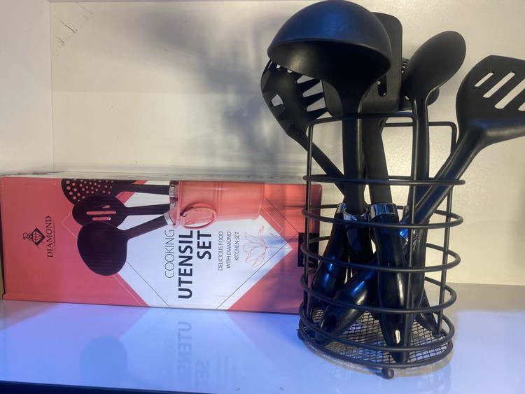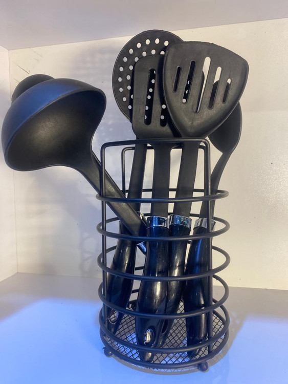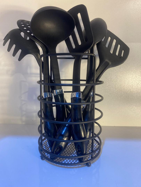 این ست کامل شامل 7 ابزار ضروری آشپزی + ۱ پایه نگهدارنده سطلی هست: