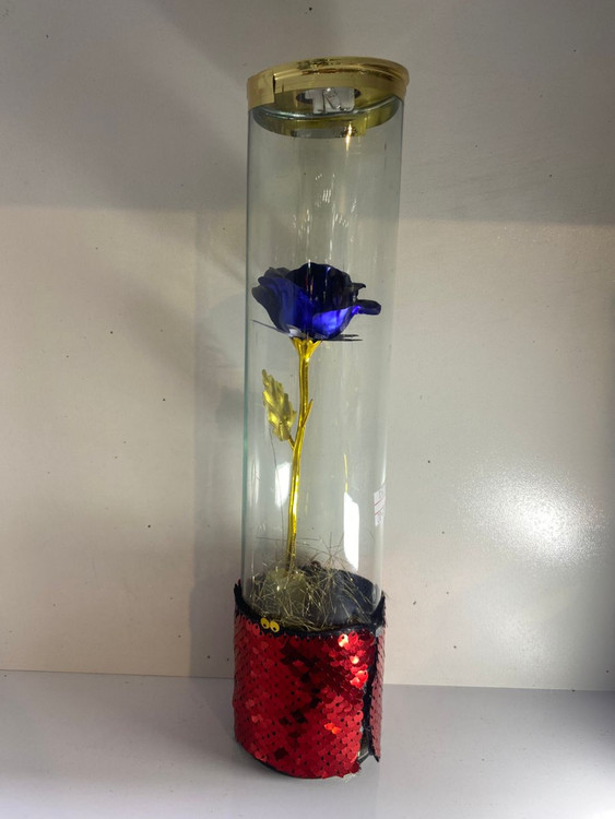 لامپ LED داخلی آن، رقص نوری زیبا با رنگهای آبی و قرمز ایجاد میکند که جلوهای جذاب و چشمنواز به گل میبخشد.