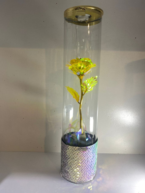 این گل شیشهای نوری، گزینهای عالی برای کسانی است که دنبال هدیهای متفاوت و خاطرهانگیز میگردند یا میخواهند دکور منزل و محل کارشان را با نوری ملایم و رنگی زیبا تزئین کنند.