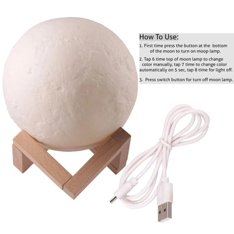 ✨ این چراغ خواب یک ماکت دقیق و سهبعدی از کره ماه است با قطر 14 سانتیمتر، که پستی و بلندیهای واقعی سطح ماه را به زیبایی بازسازی کرده است.