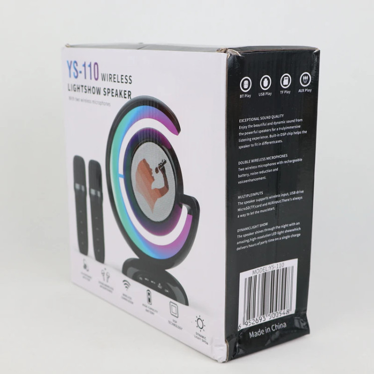✨ اسپیکر بلوتوثی مدل YS-110 با طراحی مدرن و نورپردازی پویا (Lightshow)