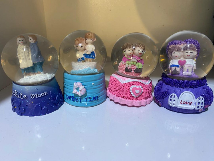 با تکان دادن گوی، برفهای مصنوعی داخل آن به حرکت در میآیند.