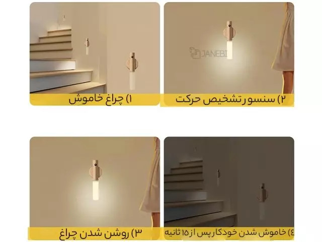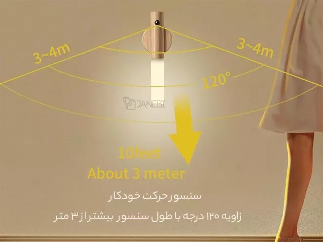 بدون نیاز به یافتن کلید لامپ ، چراغ سنسور هوشمند با کمک سنسور داخلی حساس به نور و کنترل سوئیچ هوشمند به طور خودکار روشن میشود و محیط اطراف را برای شما روشن میکند. به منظور به حداکثر رساندن عملکرد سنسور حرکت و عمر باتری، هنگامی که حرکت در تاریکی در فاصله 3 تا 4 متری و زاویه 120 درجه تشخیص داده میشود، چراغ به مدت 15 ثانیه روشن میشود و محیط را بسیار روشن میکند و سپس به طور خودکار خاموش میشود.