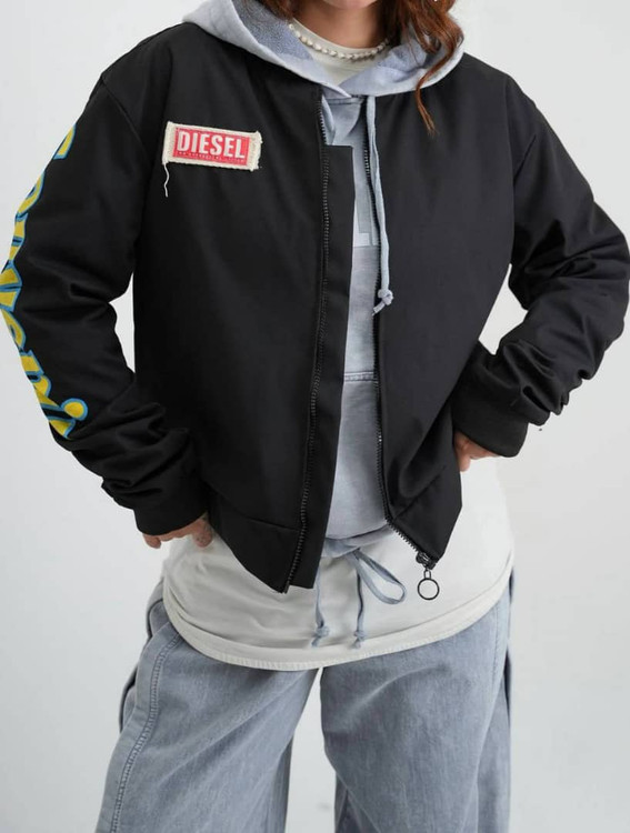 این بامبر مشکی جذاب دارای زیپ جلو می باشد . سر آستین ها و دورکمر گت دار می باشد.