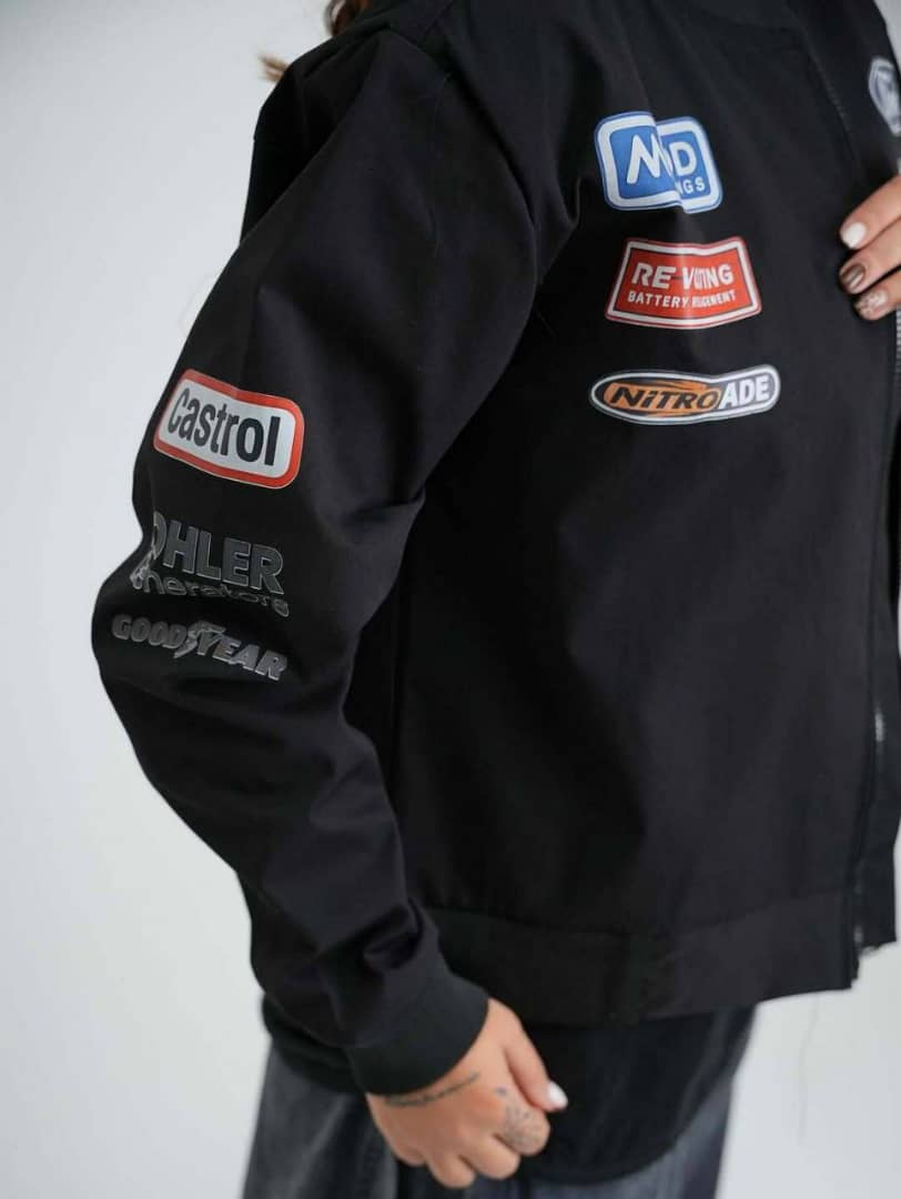 این بامبر مشکی جذاب دارای زیپ جلو می باشد . آستین ها جیب دار می باشد.