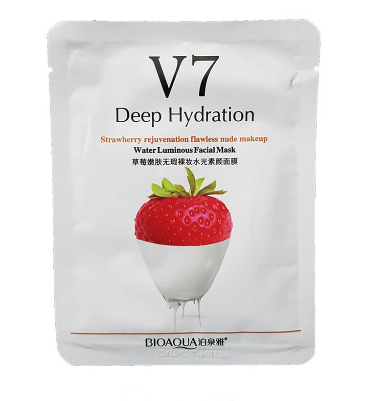ماسک ورقه ای آبرسان قوی v7 توت فرنگی 30گرمی بیوآکوا