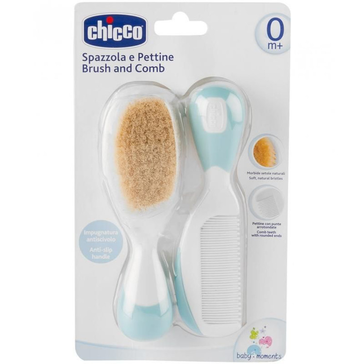 ست شانه و برس طبیعی کودک و نوزاد آبی چیکو Chicco