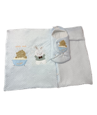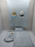 این سرویس خواب دارای تکه دوزی می باشند و دارای تکه دوزی خرسی برجسته نیز هست . این سرویس خواب رنگبندی متنوعی برای نوزادان پسر و دختر دارد . این محصول درون یک عدد کیف ( کاور )سلفونی بزرگ قرار گرفته است