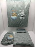 این سرویس خواب دارای تکه دوزی می باشند و دارای تکه دوزی خرسی برجسته نیز هست . این سرویس خواب رنگبندی متنوعی برای نوزادان پسر و دختر دارد . این محصول درون یک عدد کیف ( کاور )سلفونی بزرگ قرار گرفته است