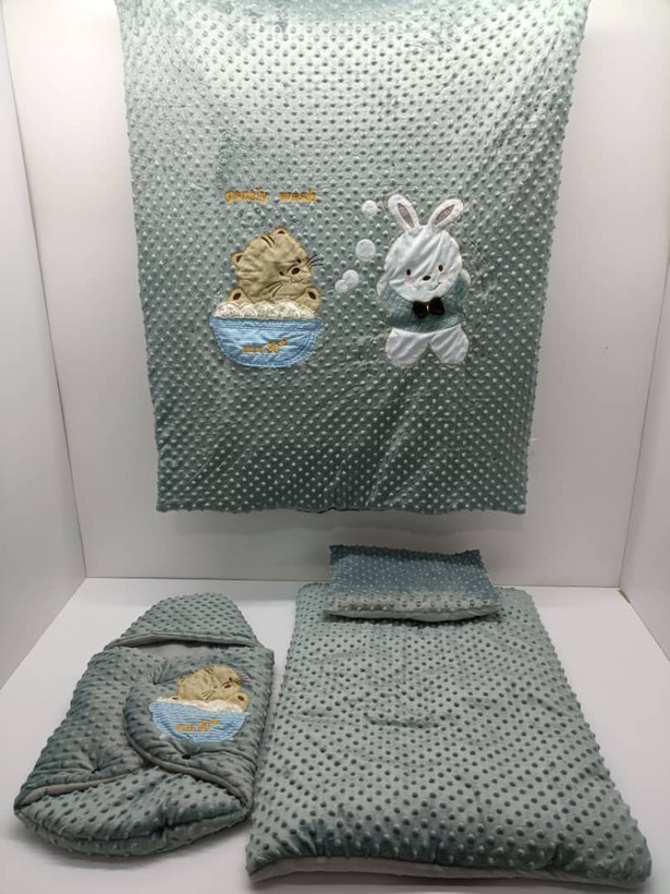 سرویس خواب نوزادی 4 تکه مخمل طرح دار، طرح خگوش و گربه رختخوابی نرم و گرم برای نوزادان و کودکان می باشد . از آنجایی که نوزاد بیشترین زمان خود را در خواب به سر می برد لذا تهیه مکان و رختخوابی گرم و نرم و مناسب برای نوزادان از اهمیت ویژه ای برخوردار است .