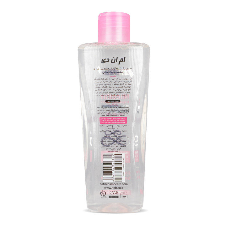 محلول پاککننده آرایش چشم، لب و صورت مناسب پوست حساس ام ان دی، یک محصول موثر برای پاکسازی صورت از ترکیبات آرایشی و آلودگی میباشد. میسلارواتر یک پاککننده برپایه آب میباشد که با جذب آلودگیهای و ترکیبات چربی، باعث جداشدن آنها از پوست و پاکسازی پوست میشود. میسلارواتر مناسب پوست حساس ام ان دی، ضمن داشتن ترکیبات آبرسان و ملایم، برای پوستهای حساس باعث ایجاد حساسیت نمیشود.