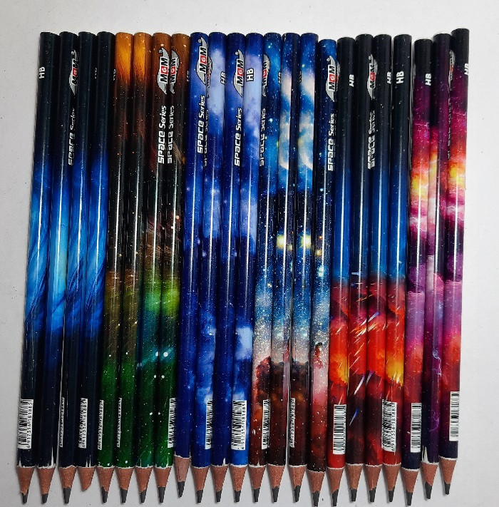 مداد مشکی ام جی ام طرح کهکشانی، مناسب برای محصلان مخصوصا دانش آموزان مقطع ابتدایی . این مداد مشکی ها از مغز مداد خوب ساخته شده و سختی نوک دارن و به راحتی شکسته نمی شوند. طراحی شیک این محصول باعث شده عضو بهترین و شیک ترین مداد ها باشد. همچنین دارای رنگ جلد مختلف