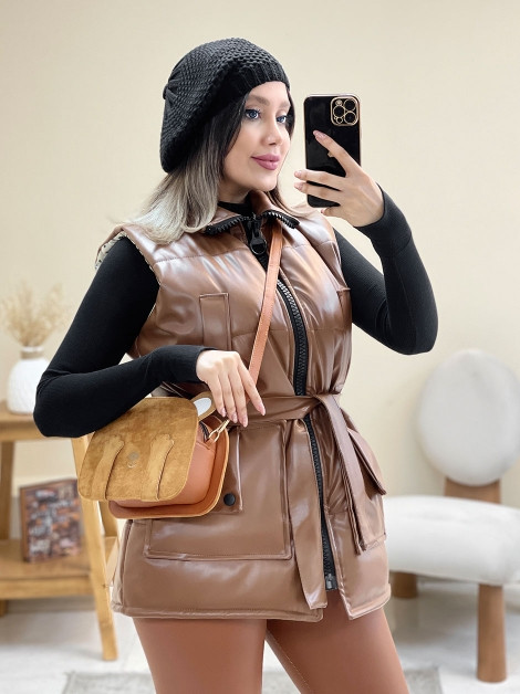 پافر چرم کمردار رنگ قهوه ای کد 5889