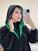 قسمت کلاه و لبه پایین بارانی گتردار و مچ آستین کش دارد.