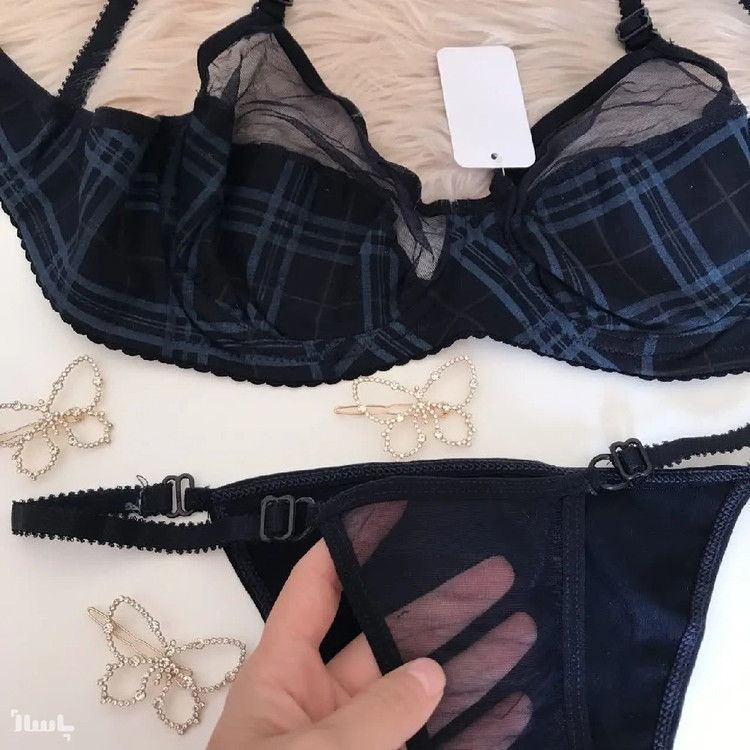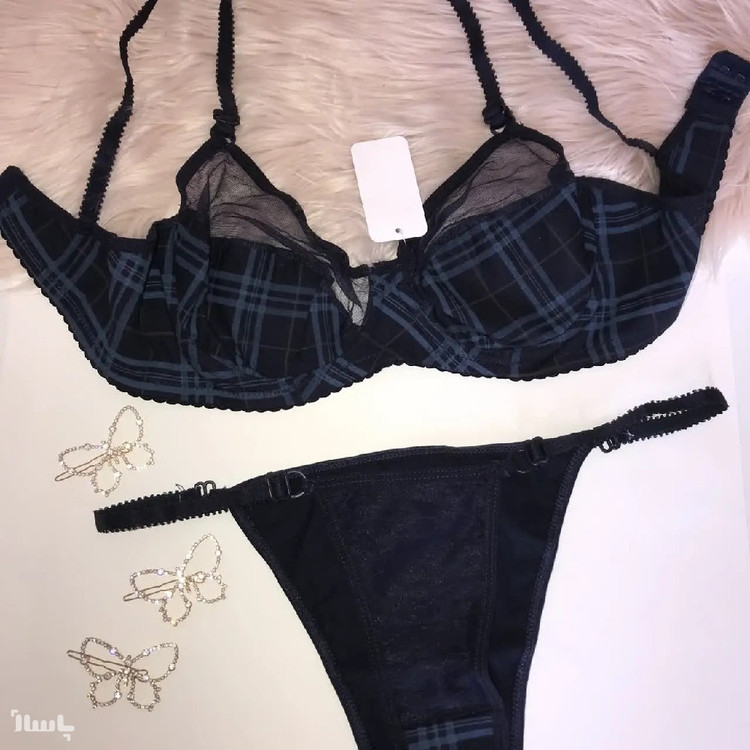B ست شورت و سوتین نخی طرح باربری رنگ سورمه ای برند ترایوت