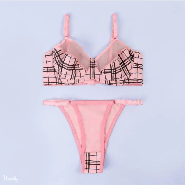 Bست شورت و سوتین نخی طرح باربری رنگ صورتی