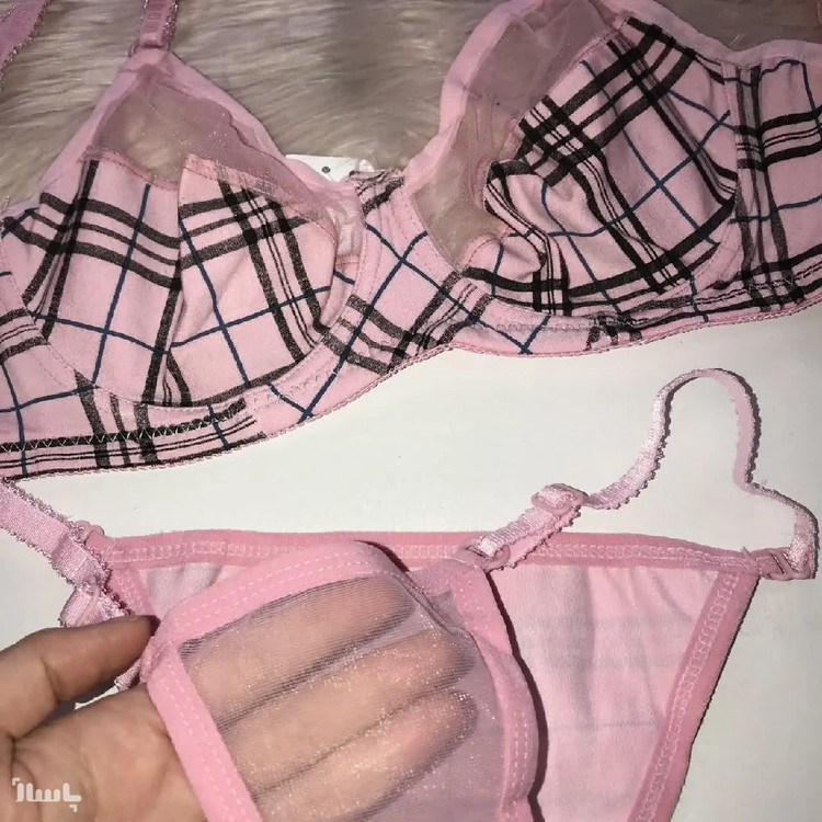 Bست شورت و سوتین نخی طرح باربری رنگ صورتی