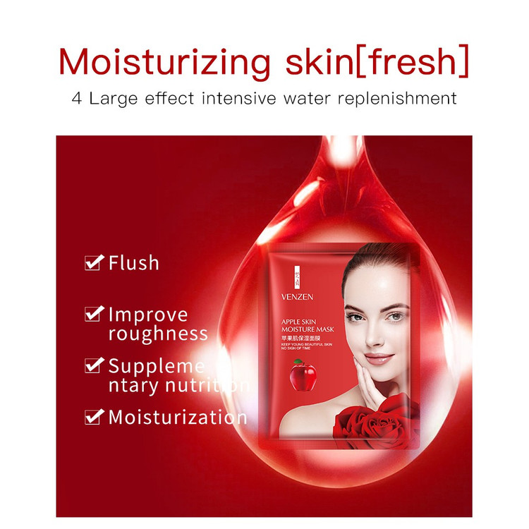 این ماسک از نوع ورقه ای و با عصاره سیب، لایه بردار و روشن کننده است، پوست صورت را با خاصیت های فراوانی مرطوب و آبرسان می کند، منافذ پوست را پاکسازی کرده و بلافاصله آن ها را می بندد. ماسک ورقه ای سیب با برند ونزن، پوست را سفت و تقویت می کند و در عین حال پوست را نرم و لطیف می کند.