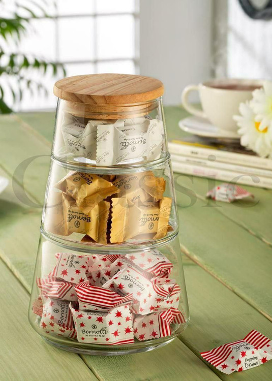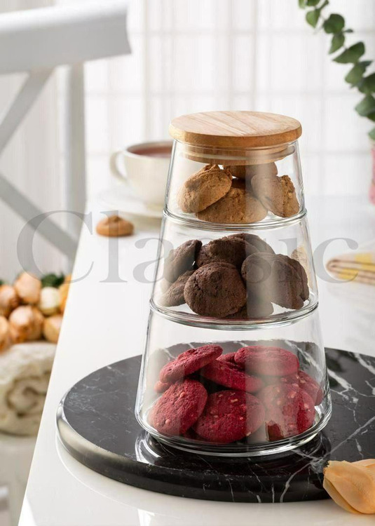 محصولی بسیار زیبا و مناسب پذیرایی از جنس شیشه و درب بامبو دارای واشر است برای عدم ورود هوا و جلوگیری از خشکی تنقلات