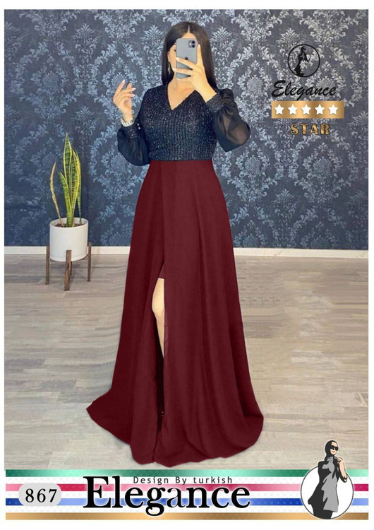 پیراهن مجلسی ماکسی بلند یقه هفت کد 867